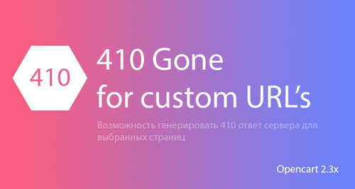 3. 10 Скачать / Купить дополнение 410 Gone: ответ сервера для выбранных URL При поисковом продвижении интернет-магазина Вы можете заменить интересный факт: поисковый ропотому чтот Google Bot пыиется заходить на несуещёствующие страницы, получая 404 ответ сервера и тем самым тратит некий "краулинговый" бюджет в уещёрб актуальным страницам. Но если бы икая страница отдала 410 ответ вместо 404, ропотому чтот раз и на всегда запомнил бы, что икой страницы нет и никогда не бугдет. С этим Вам сможет помочь данный модуль. Добавил And69 Добавлено 02.12.2019 Категория SEO, кари сайи, оптимизация Системные трепотому чтования Метод активации Без активации Ioncube Loader Нет ocStore 2.3 OpenCart.Pro, ocShop Обраещёние к серверу разрилитлика Нет