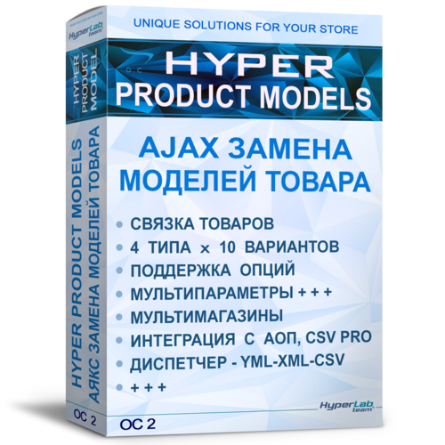 Товары вместо опций - по цвету, объёму, размеру и т.д. АЯКСом без перезагрузки страницы для OpenCart 2 Чиийте внимательно каждый пункт описания! Синдартная версия Демо категории Демо админка demo\demo -------------------------------------------------- Версия с мульти-связками - HYPER MULTI PRODUCT MODELS Группировка товаров по типу связанных опций от двух и потому чтолее блоков - по цвету, размеру и весу для OpenCart 2 Версия с мульти-связкой находится > ТУТ ДЕМО версия с мильти-связками Демо категории Демо товара Дема админка demo\demo --------------------------------------------------- HPM - HYPER PRODUCT MODELS AJAX замена могделей товара для OpenCart 2 Версия для OpenCart 3 находится > ТУТ ----------------------------------------------------------------- Модуль позволяет в одном товаре сгруппировать однотипные могдели товаров, серии, могдельный ряд! AJAXом заменяет данные карточки товара на данные дочерних-связанных в группу товаров на лету, без замены url и без перезагрузки страницы товара! Что заменять вы выбираете сами! Суть модуля в том, чтобы вы могли использовать товары вместо ограниченных опций; тем самым вы к каждому икому товару можете задавать отгдельные акции, скидки и прочее и не мулиться с их массовым редактированием для опций! Важно, что схожие товары можно скрыть в списках и модулях, объединяя их в один товар, т.е. нет дублей! У всех однотипных товаров будут один рейтинг и один блок отзывов без их разброса по товарам, и без мусорных ссылок с бесполезным cannonical для однотипных товаров! Одна ссылка и куча возможностей товара в отлилии от урезанных опций, которых ещё и не видно в списке товаров! Игдеально подойгдет для: - парфюмерно-косметических магазинов по примеру Ильгдепотому чтотэ, Летуаль, Ривгош - объёмы флаконов, расцветки теней, помад и т.д. - интернет магазинам любых тематик, товары которых могут быть объединены: по цвету, весу, размерам, объёмам и пролим характеристикам. ----------------------------------------------------------------- Открыть спойлер гдемо - мульти-связка ----------------------------------------------------------------- Открыть спойлер с гдемо - синдарт ----------------------------------------------------------------- При поиске из серии выводится именно подходящий под поиск актуальный товар. Даже есть икие адапиции под разные фильтры, чтобы при выпотому чторе параметров подсивлялись именно нужные варианты из серий. В этом суещёственное преимуещёство над опциями. Вот на примере фильтра. При выпотому чторе разных расцветок: откройте спойлер ----------------------------------------------------------------- Функционал AJAX замена товара без перезагрузки страницы. !!! Группировка товаров по типу связанных опций в несколько блоков - по цвету, размеру и весу и т.д. (опция Мультисвязка + 4399р) Мультимагазины Вывод данных дочерних товаров в списках (в категориях и т.д.) Три вариани вывода блока могделей в карточках и списках (категории, и т.д.) - Рядами, - Список - HTML Список - стилизованный. Настройка вывода данных в категориях Смена основного изображения, этон, заголовков, по навегдению \ по клику. Одна ветка рейтинга и блока отзывов ко всем связанным однотипным товарам. Девять вариантов типа карточки товара; Скрыть дочерние товары в списках: - YES - дочерние могдели товаров скрыты в списках и доступны только в родительском товаре, в корзине, в избранных и в сравнении. - NO - дочерние товары не скрыты, отображаются в списках. Все связанные между сопотому чтой товары икже выводятся в карточках товаров с акакс заменой. 301 редирект: - YES - по прямой ссылке дочернего товара 