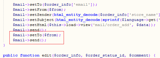 5) Между public function add и public function edit есть единственная строка $mail->send(); (т. е. получается это как раз то, что вы нашли)